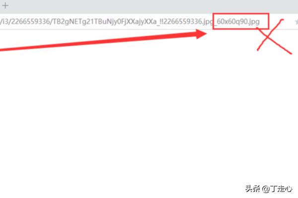 4.在新打开的页面中,我们可以看到左侧很小的那张图片。在浏览器地址栏中的地址就是这个图片的链接,看红框位置,这张图片的后缀意思就是把原图强制缩小到了60×60px大小。我们把这段后缀删掉后,点击【Enter】回车键。