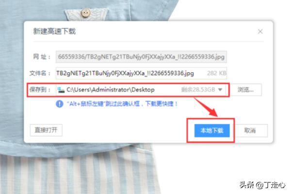 7.在弹出的【新建高速下载】弹窗中,把图片保存位置临时设置到电脑桌面位置,然后点击【本地下载】。