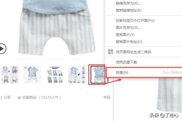 1.随便浏览一款宝贝。找到自己想要下载保存的图片,鼠标右键主图,在列表中选择【检查】。