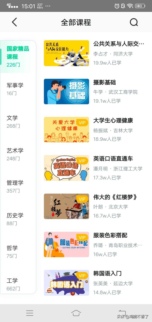 这里面有你想看的专业课。都是一些名校清华,北大,南京理工大学,南京大学,中国科技大学,重庆大学……。每个学校都有它顶尖的领域专业课,都是教授级别的人授课。而且分类多。适合不同目的的学习。考研课也有。更重要的是它有国家精品课