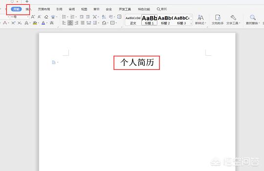 2、打开Word文档,点击开始,点击标题,然后输入“个人简历”为标题。