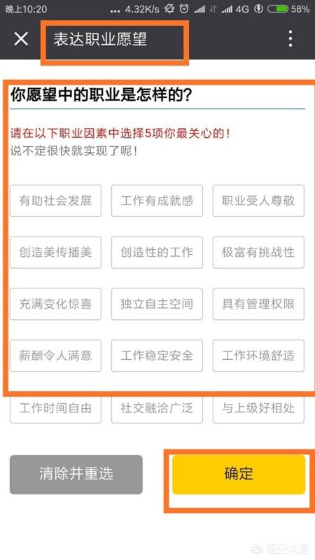 7、“描述竞职能力”完成后,进入“表达职业愿望”内容,然后点击确定,如图。简历就算做好了。